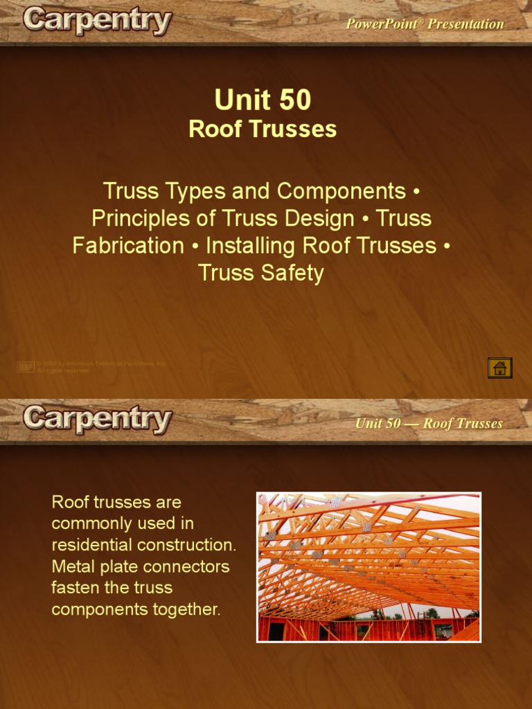 The term truss in this design guide refers to open web load carrying assemblies that support a roof or floor sys tem. It has the same slope as the standard trusses but with a flat apex. Roof trusses are to specific design and are outside nzs 3604. Maximum ground snow load of 70 psf (3352 pa), with roof snow load, computed as 0.7p g. In most residential applications the